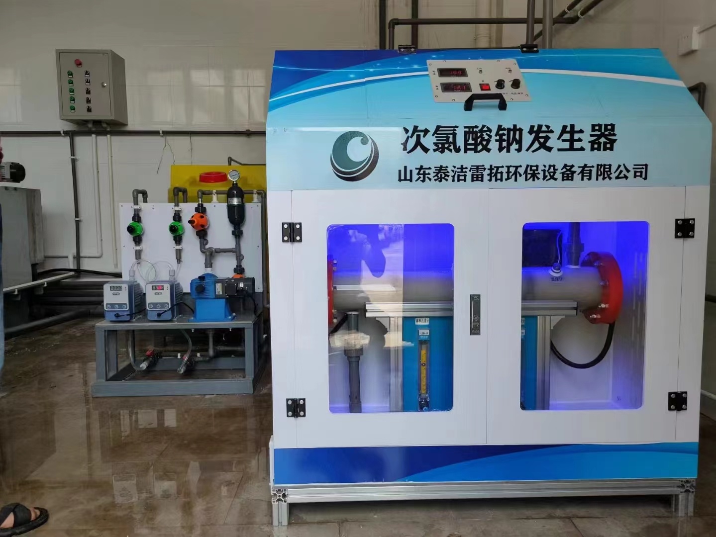 医院污水消毒次氯酸钠在杀菌、杀病毒过程中,不仅可作用于细胞壁、病毒外壳,而且因次氯酸分子小,不带电荷,还可渗透入菌(病毒)体内,与菌(病毒)体蛋白、核酸和酶等有机高分子发生氧化反应,从而杀死病原微生物。再次,次氯酸产生的氯离子还能显著改变细菌和病毒体的渗透压,使细胞丧失活性而死亡。由于次氯酸钠发生器以食盐水这种很普遍的生活用料作为原材料,所以应用广泛。通过电解反应产生的次氯酸钠溶液具有强氧化和消毒的作用,成都科佑达作为专业的次氯酸钠发生器的生产专家,专门研制的倒极电极,免去了长期使用需要清洗电极的麻烦,不需要人工再使用盐酸清洗电极,电极使用寿命长,因此其生产的次氯酸钠发生器杀毒效率更高。