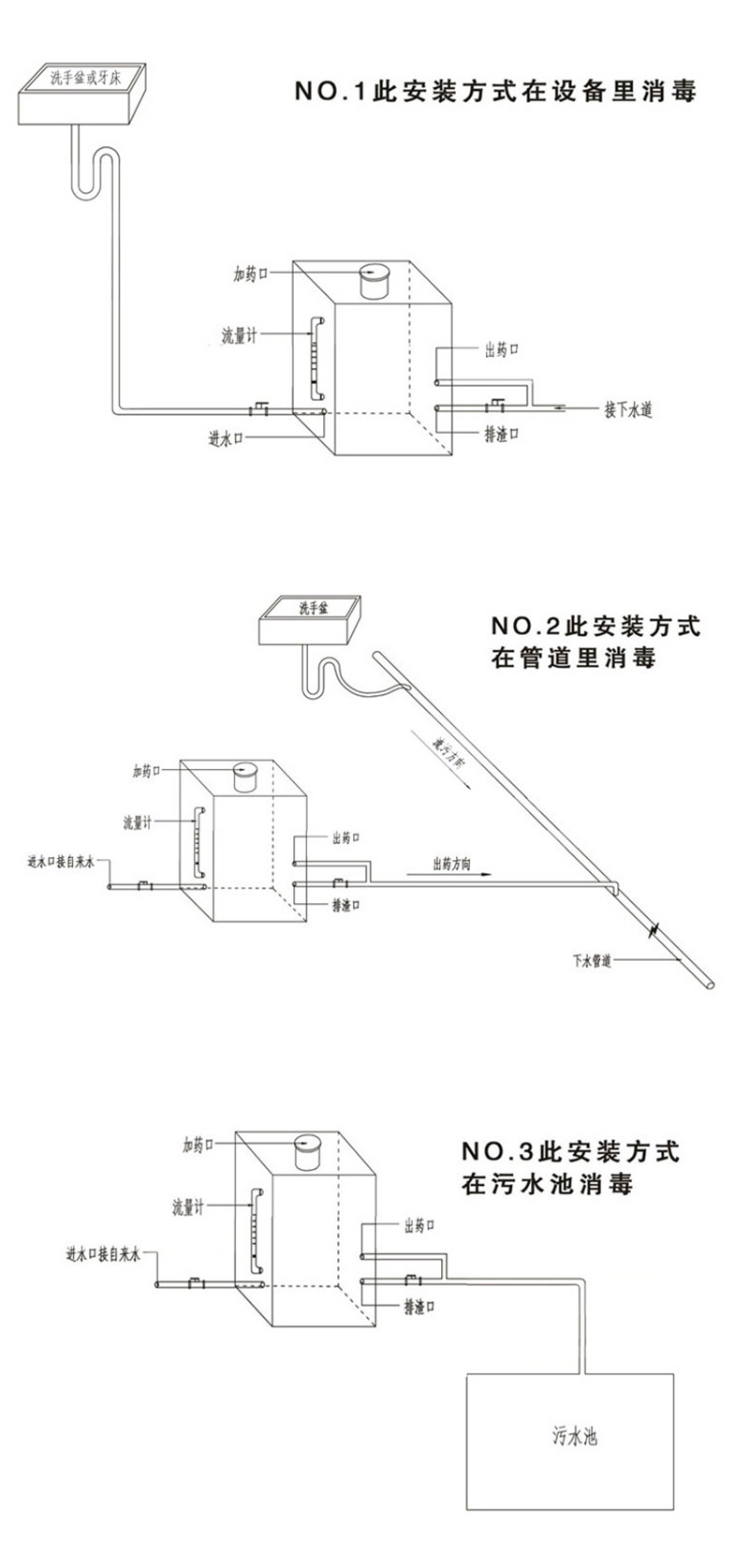 缓释消毒器采用自动缓释延时压力加氯工艺,以含量90%以上的强氯固体药剂为主要原料,水与药剂合理混合后所产生的消毒杀菌液,投加到水池、水井、管道和污水池等,并与之接触达到灭菌的作用。
